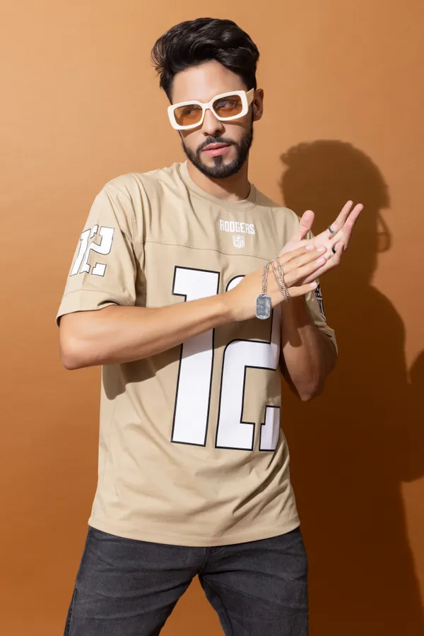 Tan Printed Round Neck Soft T-Shirt For Men (Size-XXL)