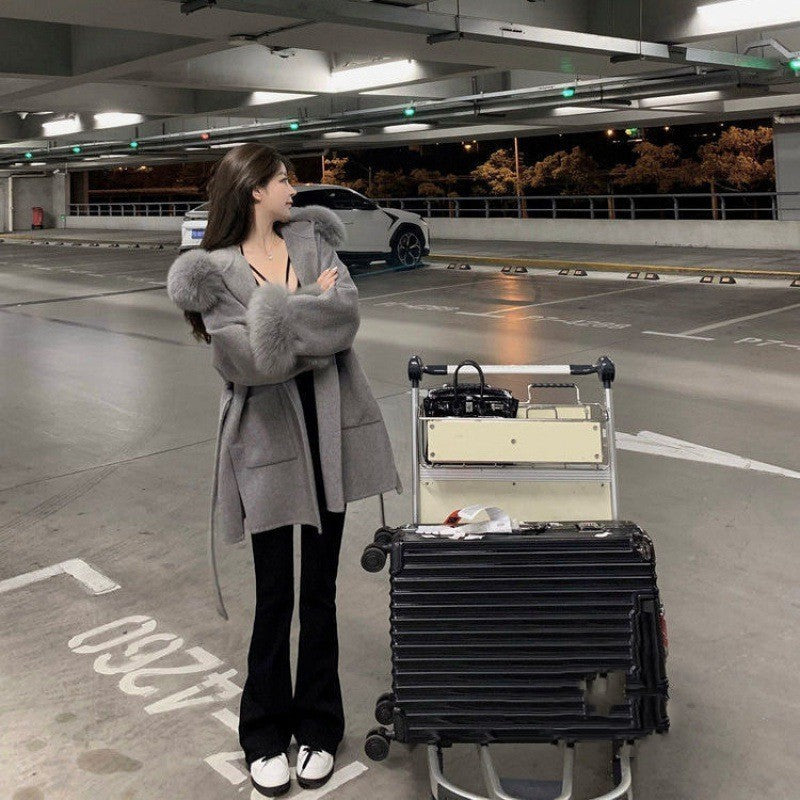 Big Fur Collar Warm Woolen Coat Women's Autumn And Winter Clothing