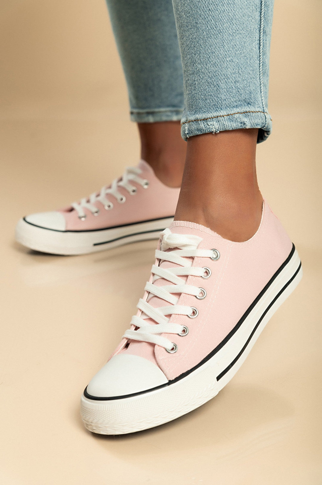 Fashion sneakers made of fabric, pastel pink