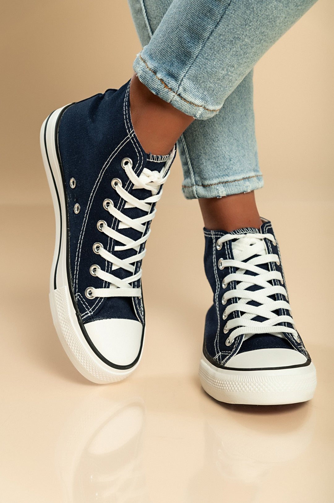 High-top canvas sneakers, dark blue