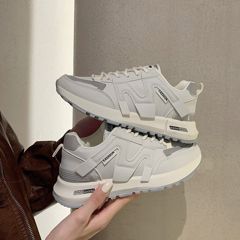 Product information: Pattern: solid color Lining material: Mesh Color: Milky White, black, gray Upper height: low top Heel height: mid heel (3-5CM) Heel shape: flat heel Size: 35, 36, 37, 38, 39, 40 Sole craft: injection moulded shoes Cutting depth: shallow mouth (less than 7cm) Sole material: rubber Popular elements: sewing thread Toe holder shape: round head Shoe Upper material: artificial pu Wearing method: front lace-up Applicable Gender: Female Function: breathable, lightweight